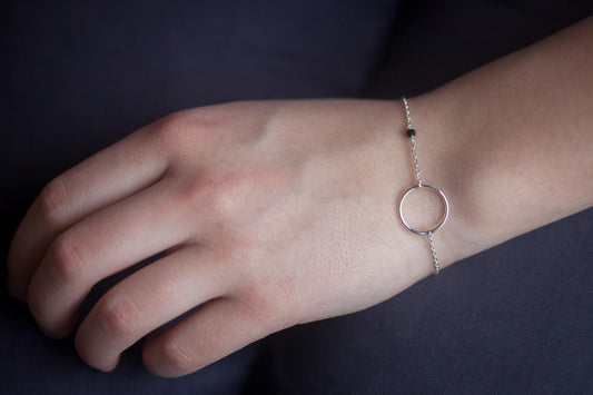 AusverkauftSilbernes Armband mit Kreis und schwarzer Perle