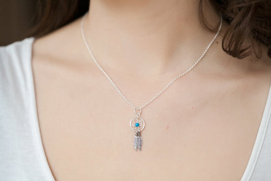 AusverkauftTraumfänger Kette 2 Federn aus Silber