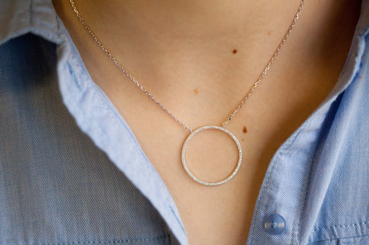 AusverkauftHalskette mit Kreis-Anhänger aus Silber/Zirkonia