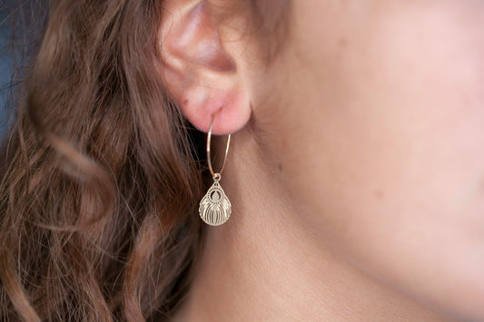 Creolen mit Feder Anhänger vergoldet, Creolen für Damen