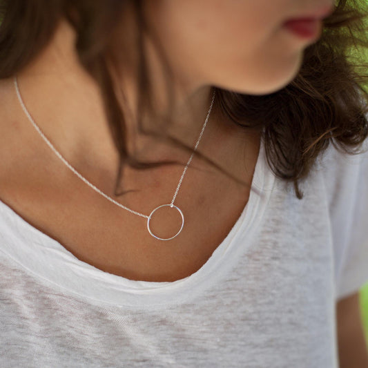 Feine schlichte Kette aus Silber mit Kreis Anhänger für Damen