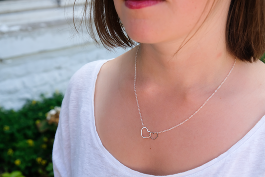 Kette zwei Herzen aus Silber - Herzenskette für Damen