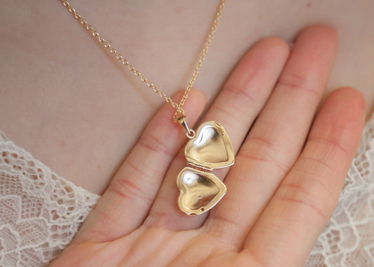 Herzförmige Medaillon-Halskette für Fotos - Vergoldet