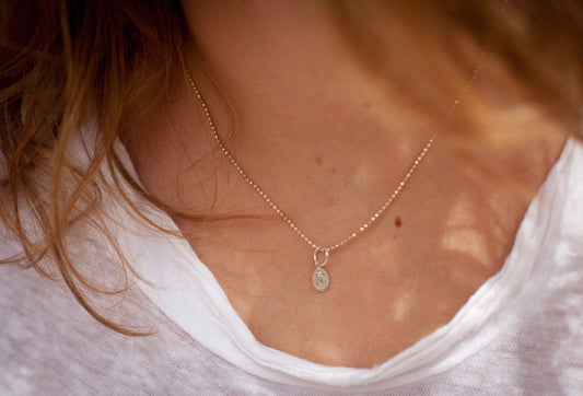 Anhänger mit Madonna Gravur Schrift, Amulett Jungfrau Maria aus Silber oder Vergoldet