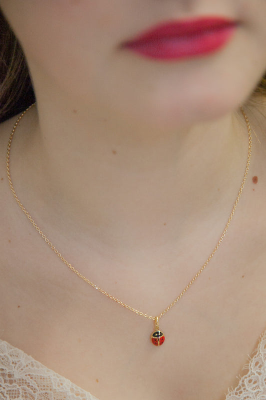 Marienkäfer-Anhänger Halskette – Vergoldet | Glücksbringer in Rot & Gold