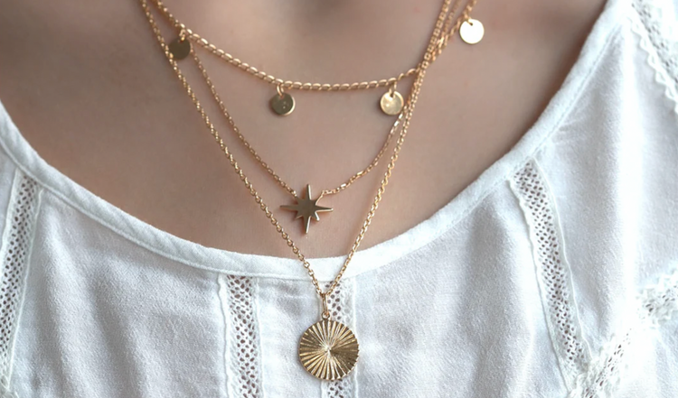 AusverkauftKette Perlmutt & Plättchen-Anhänger vergoldet