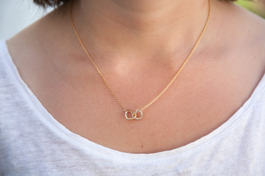 Kette 2 Herzen mit Zirkonia Vergoldet - Herzenskette für Damen