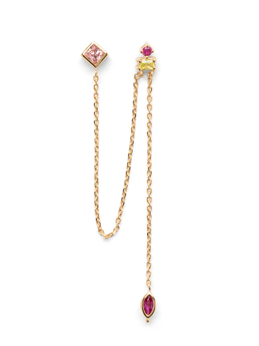 Ohrstecker Doppelstecker mit Zirkonia und Kette vergoldet - Ohrringe für Damen
