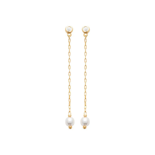 Ohrhänger mit weißer Süßwasserperle und Strass - 16K vergoldet