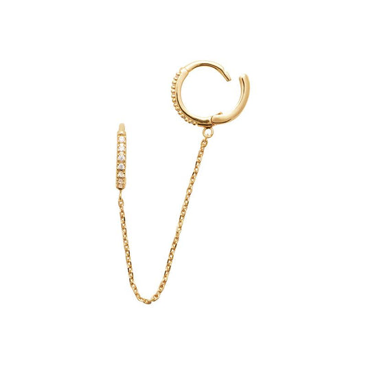Doppelte Creolen mit Kette und Zirkonia -16K Vergoldet