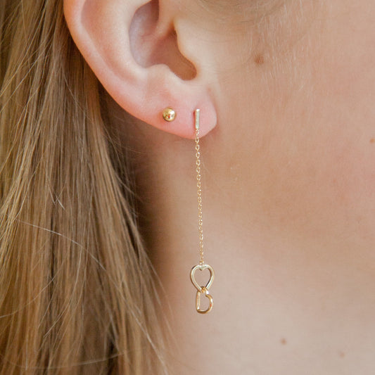 Vergoldete Ohrringe mit Kette und zwei ineinandergreifenden Herzen – Romantik in Bewegung