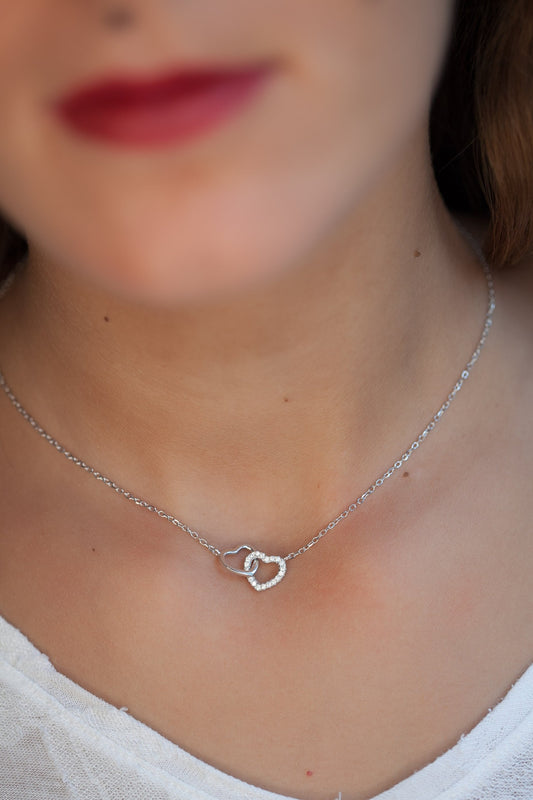 Halskette mit Zwei Herzen aus Silber und Zirkonia – Ein Zeichen der Verbundenheit